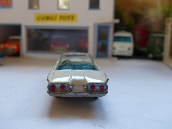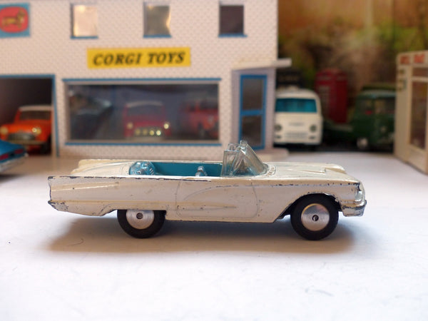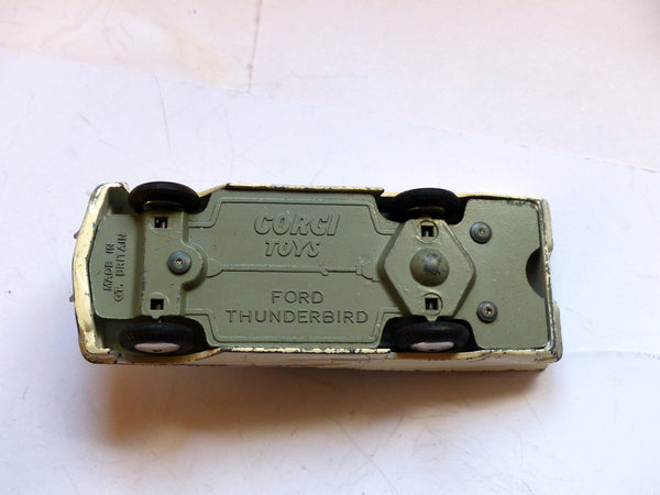 The lovely Thunderbird model was made between 1959 and 1961 and the normal, most common edition has smooth wheels with '1959' embossed on the rear registration plate. In 1960 the '1959' was removed and very late in the production period shaped wheels were fitted in place of the smooth type.