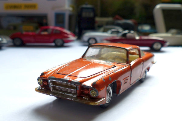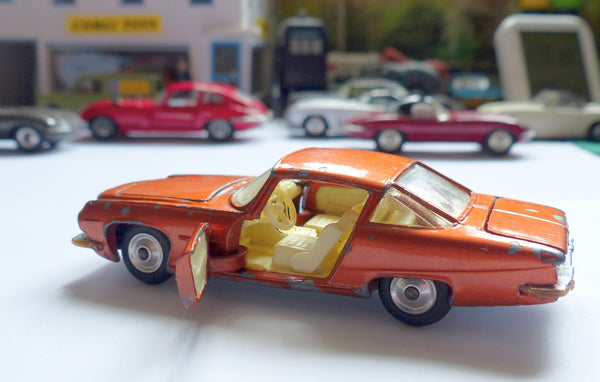 This is the rarest Ghia model. There are very few of these available in metallic copper. This example has clearly been played with but it is all original. Apart from some paint loss it has broken suspension at the front. The rear suspension is good.