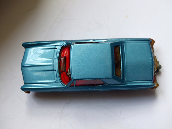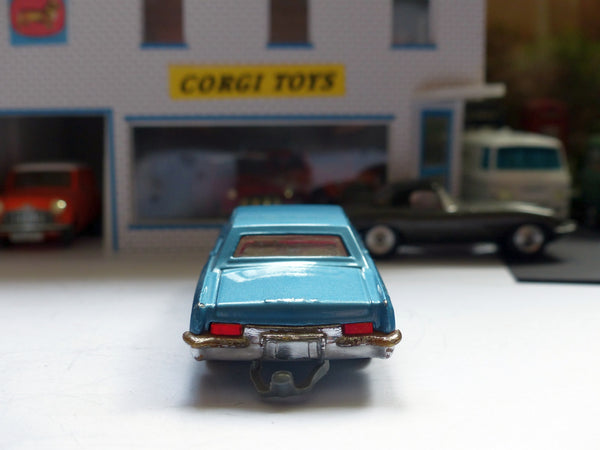 These cars are wonderfully photogenic. Originally produced in three main colours - dark blue, light blue and gold - and with the cool trans-o-lite headlights and rear lights and nice spoked wheels, this is an example of a late model with turquoise-blue paintwork and cast wheels.