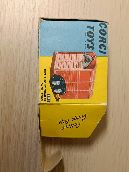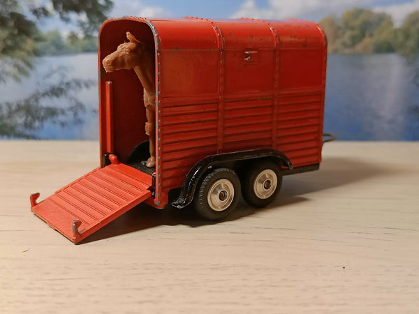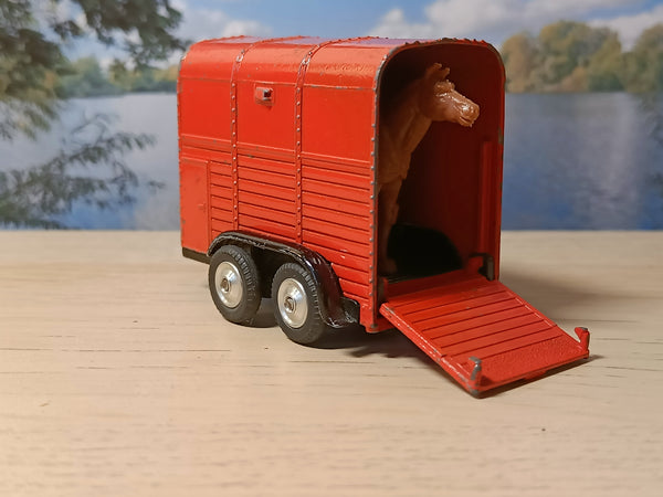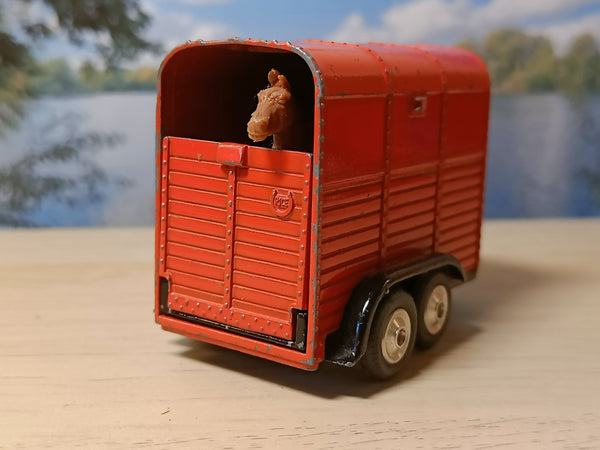 A very nice example of a rare 'transition' model of the red Pony Trailer with a wire tow bar but later fixed shaped wheels. Quite unusual, most late editions getting the solid drawbar by the time shaped wheels were being fitted.