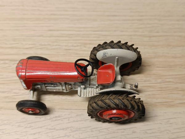 This is a nice example of the very first tractor issued by Corgi - the Massey Ferguson 65 with red seats and metal wheels.