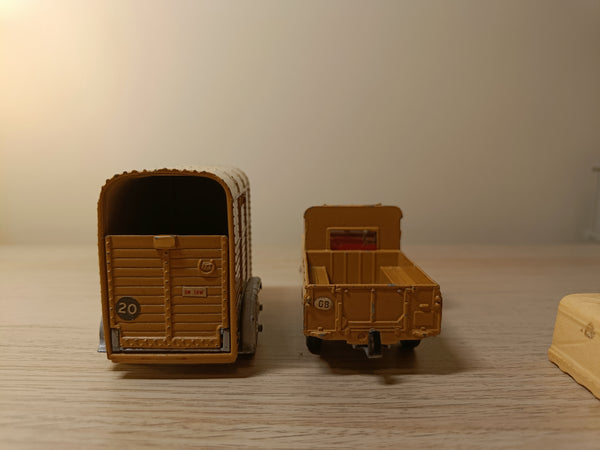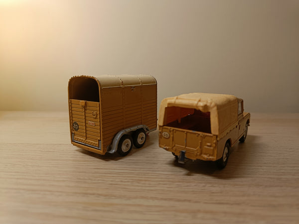 Both models are in nice condition, with just a few small marks to the paintwork on the Land Rover and with good suspension on the Land Rover and they make a fine display. The Pony Trailer is excellent. The pony is missing but good reproductions of these are available separately.