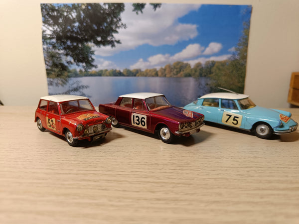 The 323 Citroën is excellent condition, all original and has an original aerial. It is hard to find examples with an original aerial. The tyres have flat spots from standing but, of course, these are not noticed when on display in this set. I can supply a set of 4 original Corgi tyres if you wish to replace them.